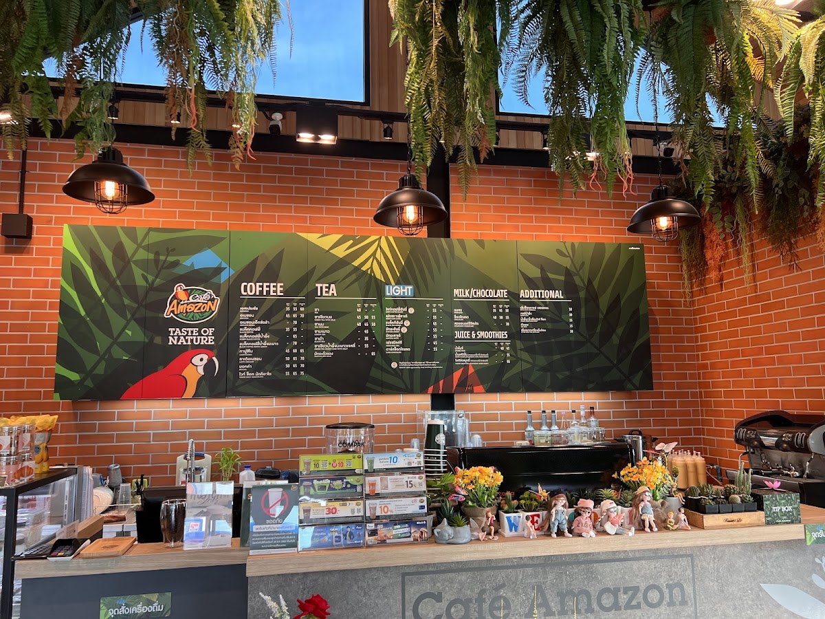 Café Amazon ปตท.จตุรพักตรพิมาน offers a refreshing oasis in the heart of Hua Chang, Roi Et. This cozy, loft-style cafe impresses with its rich, perfectly brewed coffee—intensely flavorful and expertly prepared. The spacious seating, complemented by cool air conditioning, creates an inviting atmosphere ideal for conversations and relaxation. Outside, a charming garden enhances the cafe’s appeal, making it family-friendly and especially welcoming for children. The menu boasts a wide variety of delightful pastries and snacks, perfect companions to the bold coffee flavors.